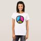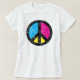 T-shirt super de signe de paix. Le signe de paix est rempli de segments bleus, rouges, et jaunes. La conception est rayée pour un regard super et vintage. Un T-shirt frais de paix !