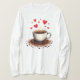 La caféine écrase une tasse de café avec des coeurs autour de celle-ci symbolisant la "brosse" pour les amateurs de café