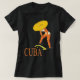 Une grande femme avec un casquette jaune regarde l'île de Cuba. Drôle design de t-shirt vintage.