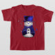 Une chemise de Noël fantaisiste et mignonne, avec un adorable petit bonhomme de neige habillé d'un chapeau bleu et d'un gilet de velours, entouré d'étoiles et d'arcs pour ajouter de la gentillesse à la garde-robe de votre enfant en cette période de fêtes.
