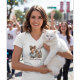 T-shirt col en V pour femmes, Blanc, Adulte S