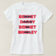 T-shirt comportant les noms des caractères principaux de la fierté et du préjudice par Jane Austen : Elizabeth Bennet, Fitzwilliam Darcy, Jane Bennet, Charles Bingley dans rose et bleu-foncé. Une grande chemise pour des amoureux des livres et des fans de Jane Austen.
