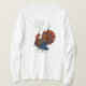 Un T-shirt à manches longues pour dames blanches avec une dinde triste, portant une bannière qui dit, 'Go Vegetarian this Thanksgiving' d'une aquarelle peinte à la main par Judy Adamson. Voir aussi carte de voeux correspondante.