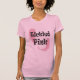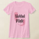 Un design graphique de plumes roses et le texte "Tickled Pink" sur un t-shirt à manches longues pour dames.