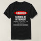 Hé toi, l'introverti ! Vous êtes à une fête, vous faites de votre mieux pour rester invisible, mais soudain quelqu'un semble s'approcher de vous. Danger ! Mais Dieu merci, vous portez votre t-shirt Danger Beware of Introvert. Vous vous tournez pour faire face à l'intrus, et quand ils se tournent et s'éloignent, vous respirez un soupir de soulagement. Contact humain évité !
