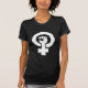 Le symbole femelle universel a combiné avec la main de solidarité en texte noir sur le T-shirt blanc