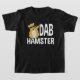 Animal familier brouillé adorable de hamster faisant la danse de limande, texte blanc sur l'arrière - plan noir.