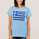 L'avant de ce T-shirt montre hardiment le drapeau grec avec son bleu distinctif et les rayures blanches avec un blanc croisent plus de le canton bleu. Ceci est assorti au fond par une carte attrayante de la Grèce.