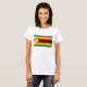 L'avant de ce T-shirt montre hardiment le drapeau zimbabwéen avec son motif distinctif sur la triangle blanche avec les bandes vertes, jaunes, rouges et noires vers la droite. Ceci est assorti au fond par une carte attrayante du Zimbabwe.