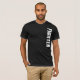 Le T-shirt noir d'arts martiaux avec le combattant a imprimé verticalement dans le blanc sur l'avant.