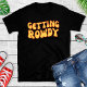 T-shirt de fête de bachelorette déjantée Funny Getting Rowdy. Texte simple qui dit Getting Rowdy avec des lettres jaunes qui ressortent vraiment sur un t-shirt noir. La tribu de la mariée adorera ces t-shirts amusants pour une fête entre filles le temps d'un week-end.