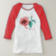 La belle illustration d'une fleur rouge de ketmie danse à travers l'avant de cette chemise. Copyright ©1994, de dessin original Deborah 2016 Willard. Le dessin original de graphite est disponible comme copie de beaux-arts chez http://pixels.com/profiles/deborah-willard.html