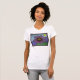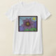T-shirt du nord-ouest de fleur en verre souillé de dahlia de cosmos. Entouré par le ciel texturisé, le soleil, l'océan, et l'herbe en verre souillé.