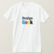 Un T-shirt pour les concepteurs partout avec le mot "geek" dans CMYK (jaune magenta et noir cyan).