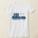 Élégance urbaine classique en l'honneur du 10ème anniversaire des attaques de terrorisme le 11 septembre. La description classique du World Trade Center dans le bleu grunge sur le T-shirt des femmes avec l'horizon de New York City silhoutted contre les Tours jumelles. Ajoutez votre propre texte fait sur commande ou message commémoratif personnalisé. Accessoires assortis disponibles. Si vous faites des événements organisés pour collecter des fonds pour bénéficier les familles, les groupes de soutien et les organismes de 9/11 victime, svp contactez-nous pour des REMISES EN VRAC SANS BUT LUCRATIF SPÉCIALES et nous serons heureux de customiser cette conception spécifiquement pour l'observation commémorative de votre organisation. Il n'y a aucun supplément pour la personnalisation. 10ème anniversaire patriotique -- cadeaux de 9/11 souvenir, T-shirts, habillement, boutons, casquettes, magnet, et souvenirs et souvenirs commémoratifs.