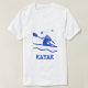 Une conception ressemblant à des pétroglyphes du chiffre de Kokopelli de filou, seulement dans cette image, il barbote un kayak ! Dans le bleu, disponible dans les styles multiples et tous tee - shirt de couleur claire.