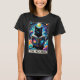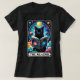T-shirt féminin en forme décontractée sur mesure avec la carte de tarot illustrée "The Reader" avec chat noir cosmique lisant un livre dans les nuages.