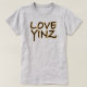 " AIMEZ YINZ" en noir et or sur l'avant du T-shirt de la dame - grand pour n'importe quelle fan de Pittsburgh.