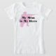 Un superbe t-shirt enfant, avec des graphismes d'une silhouette rose d'un soldat agenouillé avec un fusil. Texte en gras noir Mon maman est mon héros. Belle façon pour les enfants de soutenir leurs mères soldats. Customisez d'ajouter le texte que vous voulez.