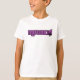 Le texte pourpre lit Motokid, avec une silhouette noire d'une petite fille sur un vélo de saleté faisant un wheelie à la fin. Habillement de vélo de saleté d'amusement pour des enfants. Cette conception est également disponible pour des garçons.