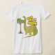 T-shirt de Nom-Nom-Nom comportant un grand wunchy munchy allant amical de Dino sur un dessus frais d'arbre et les mots dans les couleurs lumineuses NOM NOM NOM