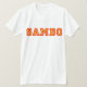 T-shirt blanc de RMA avec le Sambo en rouge et jaune sur l'avant.
