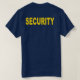 Il s'agit d'un T-Shirt bleu marine traditionnel avec des lettres d'or sur le devant et le dos lisant "Sécurité". Obtenez un pour chacun de vos agents de sécurité.