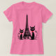 T-shirt de douille de Tour Eiffel et de chats noirs long.