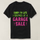 Funny Garage Vente T-Shirt - Désolé, je suis en retard, j'ai arrêté à une vente Garage - Neon Rose et vert sur Tee Noir
