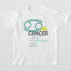 Ce T-shirt de Cancer fait un cadeau d'anniversaire parfait pour n'importe quel Cancer. Le Cancer est le quatrième signe du zodiaque et inclut toutes les personnes nées depuis le 21 juin - 22 juillet. Le symbole de Cancer est le crabe. Les traits de personnalité de Cancer sont imaginatifs, loyaux, aimant, protecteur, sensible et déprimé. La pierre porte-bonheur de Cancer est le rubis et la planète d'acte de Cancer est la lune