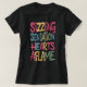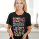 Illustration colorée avec les mots Sizzling Sensation Hearts Aflame écrit dans un style ludique et dessiné à la main. Chaque lettre est d'une couleur différente, ajoutant à la vitalité de l'oeuvre.