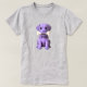 T-shirt personnalisé avec un chien en porcelaine violette, assis avec un os dans la gueule, représenté en 3D réaliste et mignon, pour un look original, tendre et plein de caractère.