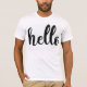 Pour concevoir un t-shirt texte "Hello", considérez la description suivante : Concept design : Texte Placement : Centré sur la poitrine pour une visibilité maximale. Style de police : Une police moderne et audacieuse avec des lignes propres, comme Helvetica ou un script écrit à la main pour un look plus décontracté et plus accessible. Taille de la police : assez grande pour être facilement lisible à distance, mais pas écrasante, équilibrée avec le design global de la chemise. Couleur : Couleur du texte : Choisissez une couleur vive comme le blanc ou le néon contre une chemise plus foncée (p. ex., noir, marine) pour un contraste élevé. Vous pouvez également utiliser du texte noir sur une chemise plus légère (p. ex., blanc, pastel) pour une sensation minimaliste. Couleur Arrière - plan : Couleur solide arrière - plan pour la simplicité, ou un effet dégradé/ombre pour un look plus dynamique.