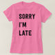 Désolé je suis en retard est un T-shirt drôle d'excuses. Nous tous savons qu'il y a ceux qui sont toujours tardif. C'est la chemise parfaite pour la personne qui peut anticiper être en retard et a un bon sens de l'humour. Pourquoi l'attente faire des excuses quand vous pouvez utiliser une chemise drôle qui nous a faits chacun savoir que vous avez su la première chose ce matin vous allaient être tardive.