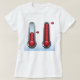 Deux thermomètres mesurant la température. Ce design semble vraiment efficace sur ce T-shirt féminin
