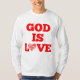 Cette longue manche comporte un bloc cinq caractères imprimés avec des lettres rouges affichant le dicton biblique "Dieu est amour" avec le O in Love fait remplacé par une collection du mot Amour fait dans un coeur dans ce thème biblique de citation. Ce t-shirt à manches longues est confortable, décontracté et souple, fait de 6,0 oz, pré-rétréci 100% coton, avec le fond cousu à double aiguille et les tiges à manches pour une plus grande durabilité a une image plus petite sur le dos nos tee - shirts s'ajustent et se porte bien sur tout le monde.
