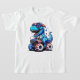Un mignon dinosaure bleu avec des étoiles cool et des teintes rayées sur un camion de drapeau américain rouge, blanc et bleu. Un superbe design pour la chemise 4 juillet de votre enfant.