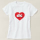 Ce t-shirt est doté d'un coeur rouge vif contenant des lettres coques inférieures arrondies et blanches, dc, une abréviation amusante pour le District de Columbia.