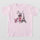 T-shirts de diva, combinaisons, tasses, sacs, cartes, autocollants, porte - clés, coussins, horloges murales, et beaucoup plus avec une conception mignonne de diva comportant une fille d'une chevelure noire dans un casquette et une robe rose avec son caniche rose près de Tour Eiffel !