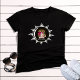 Le T-shirt présente un magnifique mandala avec une figure centrale d'une femme assise dans une pose méditative, ornée de motifs complexes et entourée d'éléments ornés et de la lune. Le design incarne l'essence du féminisme divin, symbolisant le développement, la créativité et l'intuition.