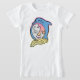 Cette chemise amusante à thème océanique montre un dauphin et un poisson qui saute pour former la forme d'un visage de filles. Le soleil se couche derrière elle et ses yeux sont fermés alors qu'elle rêve de l'océan.