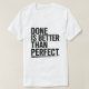 Discover this clean 'Done is Better Than Perfect' quote graphic with bold sans-serif font on white background. Perfect minimalist poster or t-shirt design for motivation