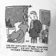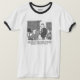 Feu d'artifice et blague de dessin politique imprimée sur un T-shirt. Les premiers ministres mettent l'heure des questions. L'homme dit qu'il a décidé de rater le feu d'artifice alors qu'il vient de finir de regarder l'heure des questions du Premier ministre. Politique britannique. Parlement britannique. Illustration de dessin animé en noir et blanc.