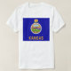 Le drapeau officiel du Kansas est constitué d'un rectangle bleu foncé disposé horizontalement avec le sceau d'état aligné au centre. Le nom d'état "KANSAS" est imprimé sous le sceau. Au-dessus du sceau se trouve un tournesol assis sur un bar doré et bleu clair. Le sceau de l'État raconte l'histoire du Kansas et de la vie des pionniers. Les trente-quatre étoiles regroupées au sommet du sceau signifient que le Kansas était le 34e État à être accepté dans l'Union des États-Unis.