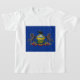Ce dessin présente le drapeau de l'État de Pennsylvanie, officiellement connu sous le nom de Commonwealth de Pennsylvanie. Le drapeau a été adopté pour la première fois en 1778 et il présente les armoiries de la Pennsylvanie, un emblème officiel de l'État. La devise de l'Etat est aussi affichée : "Vertu, Liberté et Indépendance". Perché au-dessus des armoiries est un aigle chauve, qui est destiné à représenter la loyauté de la Pennsylvanie envers les États-Unis. La Pennsylvanie est en effet l'un des 13 premiers États fondateurs de l'Union. Les deux villes les plus peuplées de l'état de Pennsylvanie sont Philadelphie et Pittsburgh. La capitale de l'État est Harrisburg.