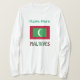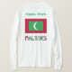 T-shirt femme à manches longues avec le drapeau des Maldives en rouge et vert, avec le mot MALDIVES ci-dessous, dans les couleurs du drapeau. Dans l'espace ci-dessus, vous pouvez ajouter un nom, en lettres vertes, pour un look spécial. Ou, placez le nom de quelqu'un d'autre sur place pour un cadeau personnalisé. Spectacles de design sur l'avant et l'arrière du T-shirt. Rien que pour une réunion de famille maldivienne.