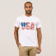 T-shirt Mens Bella Canvas en blanc avec imprimé patriotique USA Flag. Customisez cette chemise ou achetez telle quelle.