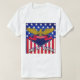 Cette conception affiche le drapeau des États-Unis avec un aigle doré chauve et les mots New York dans un dégradé bleu et blanc. Parfait pour montrer votre fierté de l'état de New York.