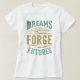 Le t-shirt présente le texte "Dreams Forge Futures" dans un design dynamique et multi. Chaque mot est d'une couleur différente, créant un look dynamique et attrayant.