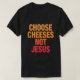 Un dessin humoristique pour les athées avec le dicton "Choisissez Cheeses Not Jesus" avec une variété de fromages à la place de symboles religieux. Parfait pour ceux qui aiment le fromage et l'humour irrévérencieux.